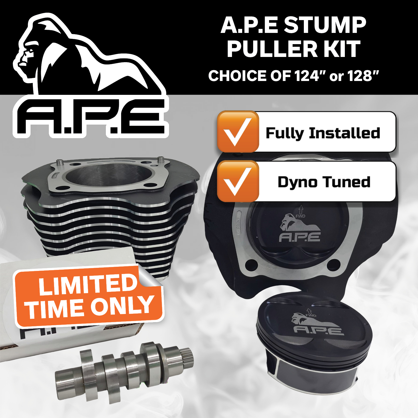The Stump Puller 128” kit is your entry to serious low-end grunt and all-day rideability. Perfect for upgrading 114” and 117” M8 engines, this package features robust APE cylinders, forged pistons, and the CR485 cam—delivering smooth torque and power that’s friendly on pump fuel. Loved by touring riders and daily commuters alike, it’s the ideal blend of durability and value.