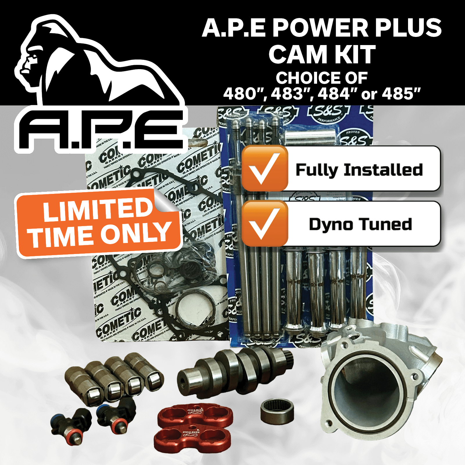 Crank up your M8’s attitude with the Power Plus Cam Kit, our most cost-effective way to unleash serious torque and throttle response. Pick your perfect grind from the 480, 483, 484, or 485 cams and feel the difference the moment you roll on. Paired with high-capacity lifters, billet cuff, adjustable pushrods, high-flow injectors and a 55mm intake, this kit delivers harder acceleration and smoother power.